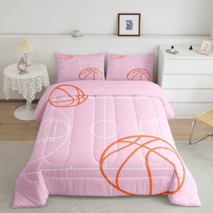 Feelyou Full Basketball Comforter Set Boys Girls Basketball Court Bedding Set for Kids Women Men Ultra Soft Pink Comforter Sport Quilt Set Room Decor