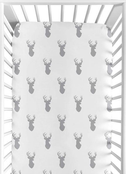 Fitted Crib Sheet for Grey and White Woodland Deer Baby/Toddler Bedding Set Collection – Deer Print