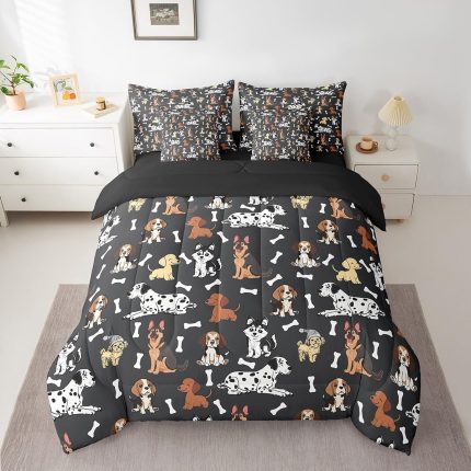 Feelyou Puppy Dog Comforter Set with Sheets Full Size Cute Bed in a Bag for Boys Girls Teens Kawaii 7 Pieces Bedding Set Bones Bed Set Room Decor