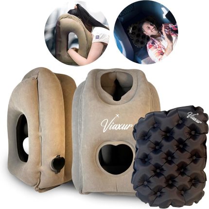 Inflatable Travel Pillow Set with seat pad – Travel Accessories for Optimal Rest on Your Trips – Flexible Pillow – Inflatable Travel Set Sleep aid – Plane Travel Essentials.