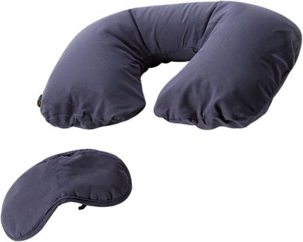 Inflatable Travel Neck Pillow and Eye Mask Sleep Set for Adults and Kids Travel Accessory for Relaxing Comfort Pain Relief for Flights and Car Rides Essential – Blue 223