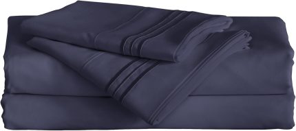 Furinno Angeland Vienne (3 Piece) Microfiber Bed Sheet and Pillowcase Set, Twin, Navy Blue