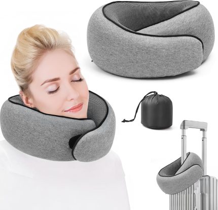 Airplane Neck Pillow for Long Flight – Ergonomic Support for Airplane Travel,Office & Car,Gray