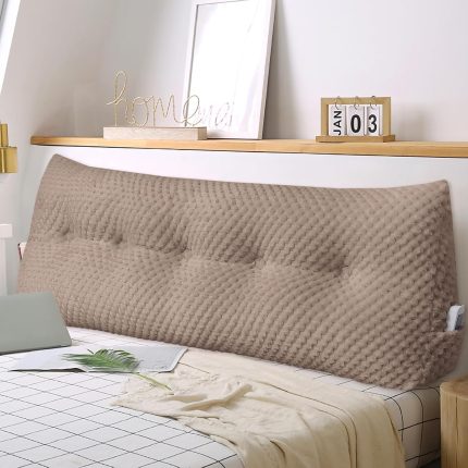 Large Triangular Headboard Wedge Pillow Soft and Supportive Headboard Backrest Positioning Support Bolster Cushion, Bed Wedge Pillow with Removable Cover(Brown,Full,54x8x20inch)