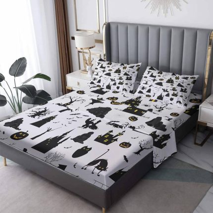 Halloween Sheets King Size Sheet Set – Spooky Goth Bed Sheets & Bedroom Decor – Soft Breathable Microfiber Deep Pocket Patterned Bedding Sheets & Pillowcases