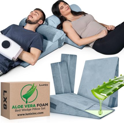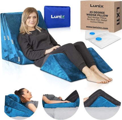 Lunix 5pcs Orthopedic Bed Wedge Pillow Set, Post Surgery Memory Foam for Back, Leg, and Knee Pain Relief, Adjustable Sitting Pillow for Sleeping, Acid Reflux, and GERD, with Hot Cold Pack, Blue