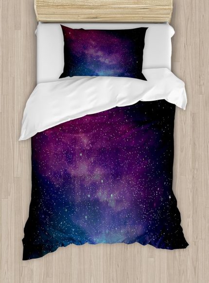 Lunarable Star Duvet Cover Set, Universe Filled with Stars Nebula and Galaxy Cassiopeia Interstellar Astronomy, Decorative 2 Piece Bedding Set with 1 Pillow Sham, Twin Size, Magenta Blue Black