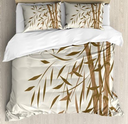 Lunarable Exotic Print Duvet Cover Set, Tree Design in Neutral Soft Colors Asian Culture Inspired Art Eastern, Decorative 3 Piece Bedding Set with 2 Pillow Shams, Queen Size, Beige and Brown