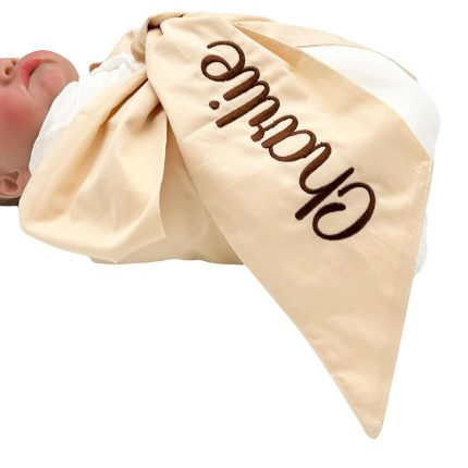 Morxy Personalized Newborn Swaddle Sash – Soft Cotton Maternity Sash with Big Bowknot – Custom Sash for Baby Girls & Boys – Cute Baby Accessory for Newborn Photography Props and Nursery Decor (Beige)
