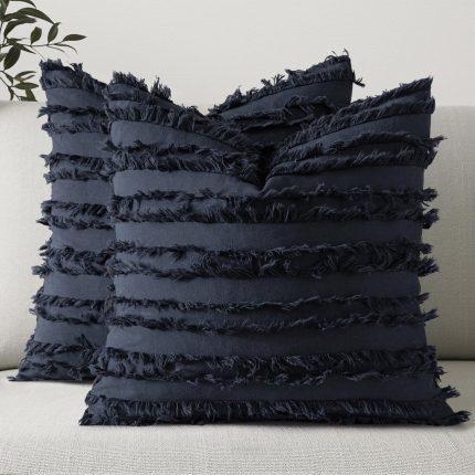 MIULEE Set of 2 Decorative Boho Throw Pillow Covers Linen Striped Jacquard Pattern Cushion Covers for Sofa Couch Living Room Bedroom 20×20 Inch Navy Blue