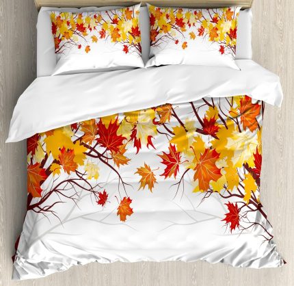 Ambesonne Fall Duvet Cover Set, Image of Canadian Maple Tree Leaves in Autumn Season Soft Reflection Effects, Decorative 3 Piece Bedding Set with 2 Pillow Shams, Queen Size, Orange White