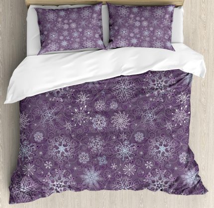 Ambesonne Eggplant Duvet Cover Set, Christmas Inspired Flowers Snowflakes and Swirls in a Violet Delicate Environment, Decorative 3 Piece Bedding Set with 2 Pillow Shams, Queen Size, Violet