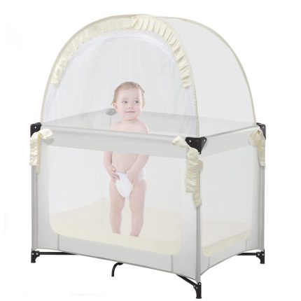 Pack N Play Tent, Baby Crib Tent to Keep Baby from Climbing Out, Pop Up Crib Net for Pack and Plays, Mini Cribs & Play Yards, See-Through & Breathable Mesh Crib Canopy, Beige, R07s-beige
