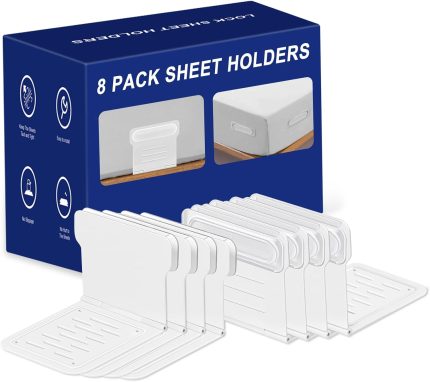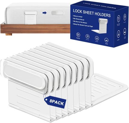 Patented Bed Sheet Holders for Corners, 8Pcs Lock Sheet Holders Keep Sheets Firm & Tight, Heavy-Duty Fitted Sheet Holder, Bed Sheet Locks for No More Loose Sheets, Easy Install (S-Height 2.8″)