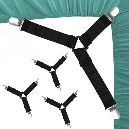 panthra 4 PCS Bed Sheet Holders for Corners, Adjustable Fitted Sheet Holders for Corners with Metal Clips, Keep The Tight, Improve Your Sleeping Experience (Black)