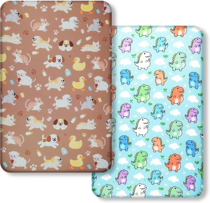 Pack and Play Sheets, 2 Pack Mini Crib Sheets for 38×26 Mattress, Stretchy Snug Fit Playard Fitted Sheet, Soft Breathable Cozy Material, Compatible with Graco Pack n Play for Baby and Toddler