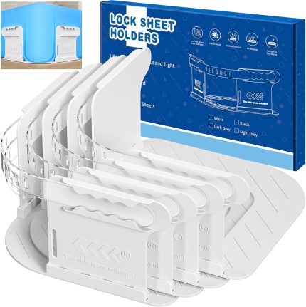 Sheet Holders for Bed Corners – Plastic Fasteners Keep Sheets Firm & Tight, Secure Fitted Sheet Holders for Corners, Durable Bedding Clips (White, 4-pcs)