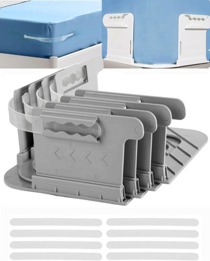 Sheet Grippers for Mattress 4 Pcs Bed Sheet Holders Adjustable Sheet Fasteners No-Slip Fixing Buckles Secure Mattress Side Clips for Fitted Sheets Bedding Accessories to Keep Sheets Firm Tight
