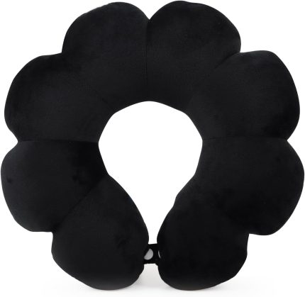 Sexysamba Flower Travel Neck Pillows for Airplanes Breathable Cotton U-Shaped Neck Pillow for Kids & Adults Head Neck Chin Support Rest Pillow for Traveling,Car,Train,Bus,Recline,Home,Office,Black