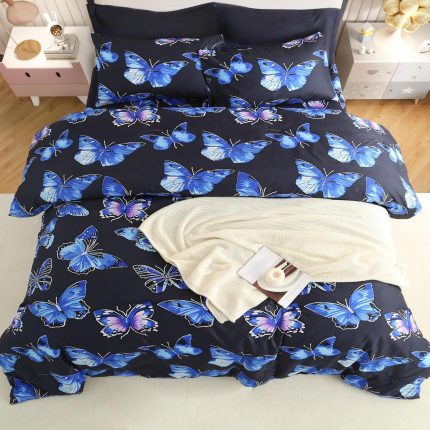 SDIII Blue Butterfly Comforter Set Full 3 Pieces, Soft Microfiber Lightweight Butterfly Bedding Set Queen for Girls Kids and Teens All Season