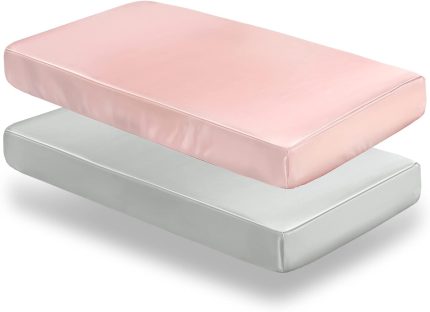 SiinvdaBZX 2 Pcs Satin Crib Sheets for Baby Hair, Silky Soft Fitted Crib Sheets for Standard Crib and Toddler Mattress (Light Grey & Pink, 52 x 28 x 8In)