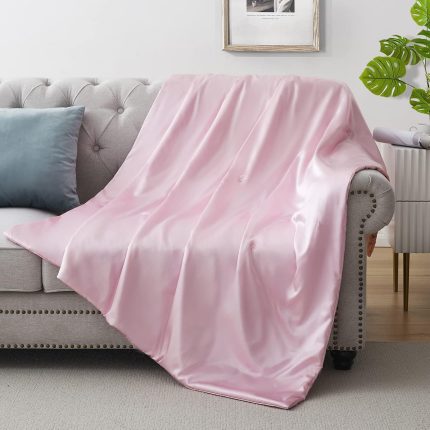 Silk Throw Blanket – Pink Cooling Packable Satin Blanket for Couch, Bed, Camping, Outdoor, Travel, Car – Super Soft Lightweight Cozy Blanket(90” x 90”, Pink)