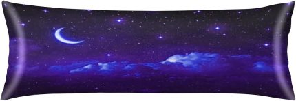 Silk Satin Body Pillow Cover Blue Body Pillow Pillowcase Dark Night Cloud Star Sky Moon Nebula Galaxy Stars Long Pillowcase with Zipper Decorative Soft Rectangle Pillows Cases for Bed 20″x54″