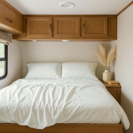 Shreem Linen RV King Sheets 72×80, 100% Egyptian Cotton 4-Piece Camper Bedding Set, Fits 10-12″ Deep RV Mattress, Ivory