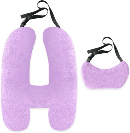 Soft Plush Car Pillow Travel Pillow for Kids with Neck Support Headrest, H-Shape Car Pillows for Kids Sleeping on Long Road Trips, Adults Child Car Seat Pillow, Body Support Travel Accessories, Purple