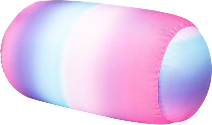 Squish Microbead Pillow Neck Lumbar Body Sopport Microbead Bolster 7 and 12Inches Travel Pillows for Chair Sleeping Car Seat Emotional Colorful Dormroom Accessory(Pink White)