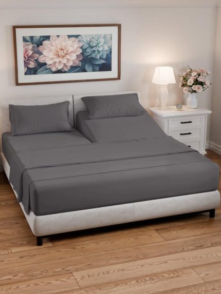 Split Head King Sheets Set – Top Split King Sheets for Adjustable Beds, Easy-Fit Split Head King Mattress – Flex Split Top King Sheets, Easy-Fit, Breathable, Deep Pocket Split King Sheets – Dark Grey