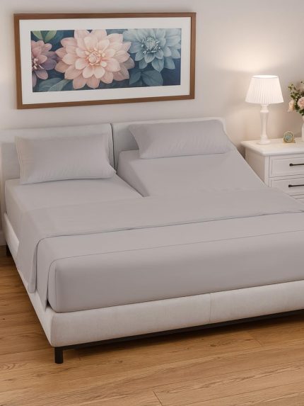 Split Head King Sheets Set – Top Split King Sheets for Adjustable Beds, Easy-Fit Split Head King Mattress – Flex Split Top King Sheets, Easy-Fit, Breathable, Deep Pocket Split King Sheets – Light Grey