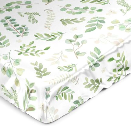 Sweet Jojo Designs Green Boho Floral Leaf Boy Girl Gender Neutral Unisex Baby Satin Fitted Crib Sheet Infant Newborn Nursery Toddler Bed Room Standard Mattress Sage White Bohemian Watercolor Botanical