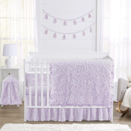 Sweet Jojo Designs Purple Floral Rose Girl Baby Crib Bedding Set Infant Nursery Room BreathableBaby Breathable Mesh Crib Liner 6p Solid Light Lavender Flower Elegant Princess Vintage Boho Shabby Chic