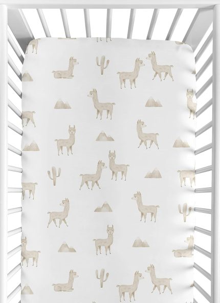 Sweet Jojo Designs Fitted Baby Crib Sheets (Boho Llama) for Girls, Infant Nursery, Toddler Bed Room – Standard Size Mattress (Bohemian, Southwest, Watercolor, Mountain, Cactus, Farmhouse Animal)