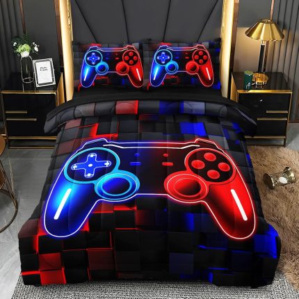 Twin Gamer Bedding Set for Boys, 3 Pcs Gaming Twin Comforter Set for Boys, Kids Twin Bedding Set for All Season
