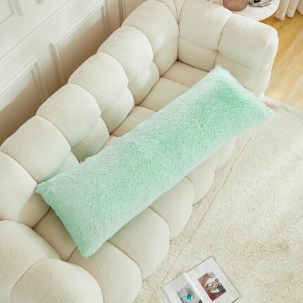 Uhamho Body Pillow Cover Large Fluffy Shaggy Lumbar Full Body Pillowcase 21 x 54 Inches Soft 1 Pack Modern Home Decorative Zipper Closure, Aqua