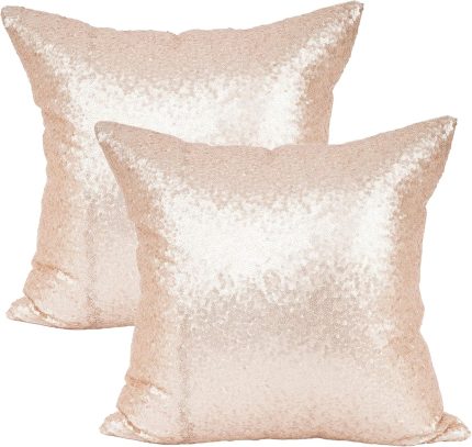 YOUR SMILE Pack of 2, New Luxury Series Rose Gold Bling Decorative Glitzy Sequin & Comfy Satin Throw Pillow Cover Cushion Case for Wedding/Christmas,22″x22″