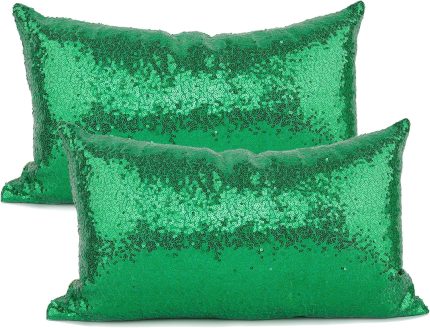 YOUR SMILE Pack of 2, New Luxury Series Solid Color Decorative Glitzy Sequin & Comfy Satin Throw Pillow Cover Cushion Case for Wedding/Christmas (14 Green, 12″x20″)