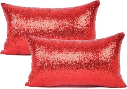 YOUR SMILE Pack of 2, New Luxury Series Red Decorative Glitzy Sequin & Comfy Satin Solid Throw Pillow Cover Cushion Case for Wedding/Party,12″ x 20″