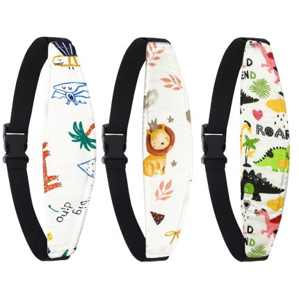 3 Pcs Baby Head Support for Car Seat, Adjustable Band Strap for Stroller, Soft Neck Relief Slumber Sling for Toddler Infant Children and Kids, Sleep and Travel Protection Headrest Belt-Dinosaur