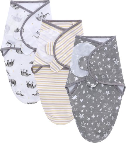 LAT Swaddle Blanket with zip Baby Girl Boy-Easy Adjustable 3 Pack Infant Sleep Sack Wrap Newborn Babies 100% Cotton Sleep Bag(Gray Elephants,0-3Months)