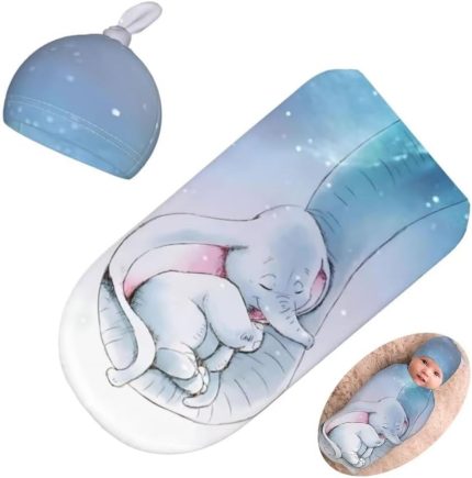 Cute Elephants Newborn Swaddling Blanket Beanie Hat Sets Soft Baby Receiving Funny Animal Blanket Soft Sleeping Bag New Born Soft Sleep Sacks for Boys Girls