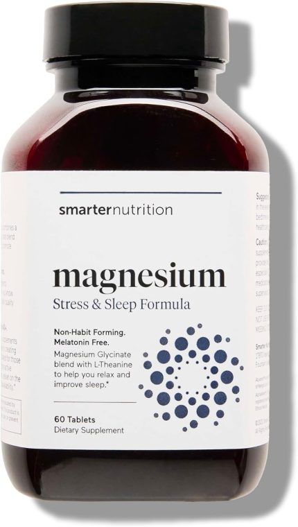 Smarter Nutrition Magnesium Complex – Chelated Magnesium Glycinate + Citrate, Malate for Sleep, Relaxation, Muscle & Nerves + Clinically Proven L-Theanine, Non-GMO-60 Tablet[30-Day Supply]