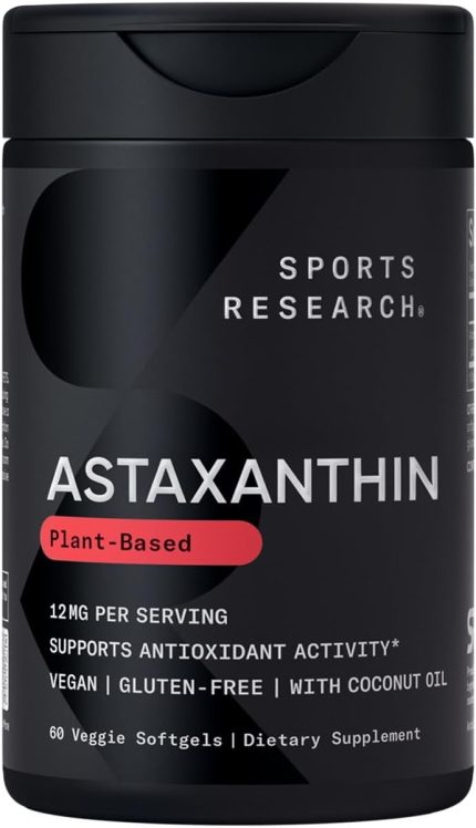 Sports Research Triple Strength Astaxanthin 12mg with Organic Coconut Oil – Antioxidant Supplement, Non-GMO Verified & Gluten Free – 60 Softgels