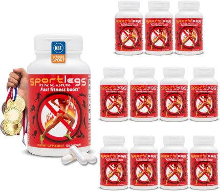 SPORTLEGS Fast Fitness Boost Pre Workout for Men and Women, Lactic Acid Supplement, Sports Endurance Fuel, Endurance Supplements for Runners – NSF Certified for Sport,120-Capsule Bottle, Pack of 12