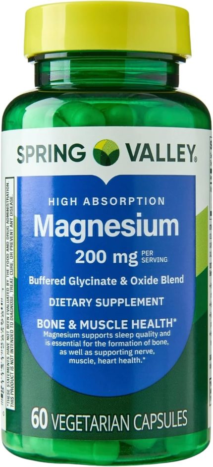 Spring Valley, Magnesium, Bone & Muscle Health, Dietary Supplement, Vegetarian Capsules, 200 mg, 60 Count + KPplus Sticker