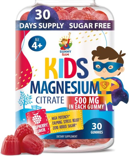 Sugar-Free Magnesium Gummies for Kids & Teens – 500mg Calm Magnesium Citrate – Chewable Magnesium Gummy Supplement for Sleep, Mood & Muscle Support – Citrato de Magnesio para Niños – 30 Days Supply