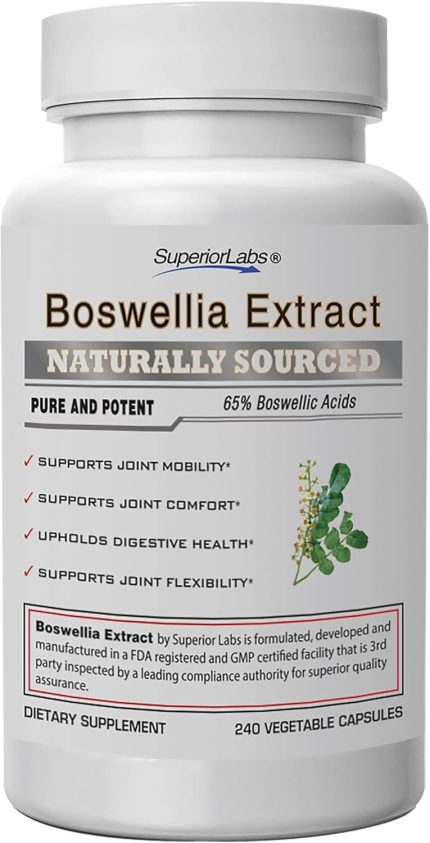 Superior Labs Boswellia Serrata Extract 500mg – 65% Boswellic Acids, Pure Non-GMO, Zero Fillers, Indian Frankincense, Supports Healthy Inflammatory Response & Joint Comfort – 240 Veg Caps
