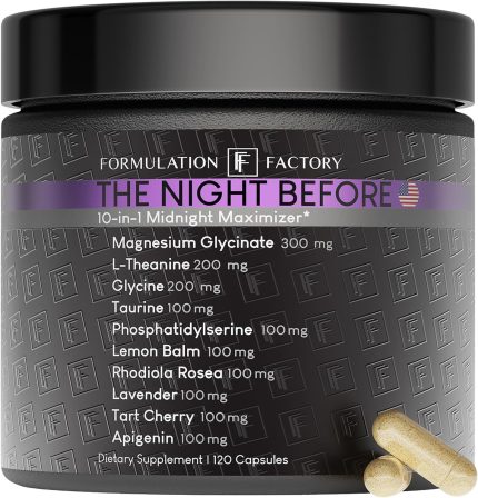 The Night Before 10-in-1 Midnight Maximizer Sleep Aid, Stress Relief, Cognition, Relaxation, Recovery, Focus, Magnesium Glycinate, L-Theanine & More, (120 Capsules – 2 Month Supply)
